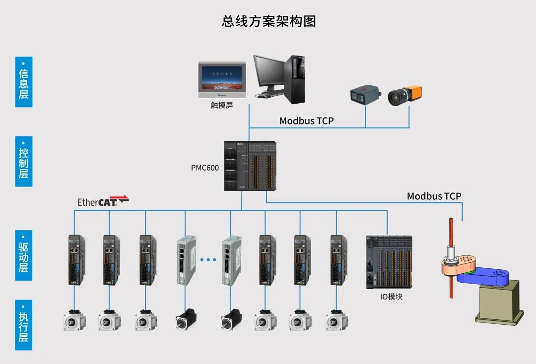 歐德神思(CODESYS)的緊密合作伙伴--雷賽智能,深入鋰電行業(yè)傾聽(tīng)OCV設(shè)備對(duì)運(yùn)動(dòng)控制的要求,推出“控制+視覺(jué)+伺服+步進(jìn)”的EtherCAT總線運(yùn)動(dòng)控制方案:可以實(shí)現(xiàn)核心零部件的進(jìn)口替代,優(yōu)化系統(tǒng)走線,支持工藝算法定制,提升設(shè)備帶載能力,提高測(cè)試穩(wěn)定性。