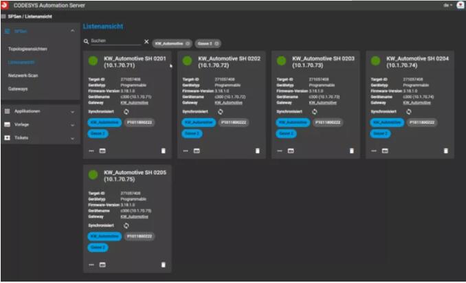 2020年2月,Gebhardt 正式將CODESYS Automation Server 實施在其客戶項目中,將集成CODESYS Automation Server的物流倉儲管控系統(tǒng)快速部署在客戶現(xiàn)場。近期,基于云的Automation Server被引入 Brownfield(棕地)工程,Lang 和他的同事們現(xiàn)在正通過Automation Server云平臺,高效便捷地管控Intersport Deutschland(宜動德國)倉庫中的上百個控制器和其中運行的應(yīng)用程序。