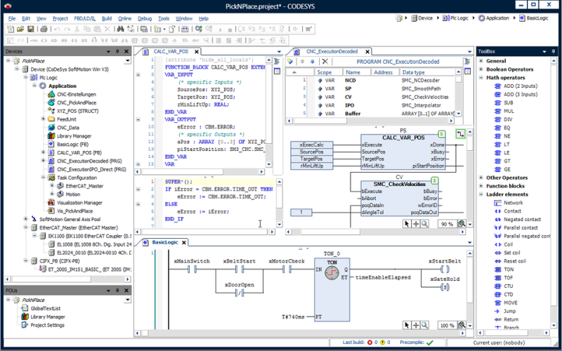 CODESYS IDE基于微軟.NET架構(gòu)開發(fā),完全符合IEC 61131-3標(biāo)準(zhǔn)。CODESYS IDE 具有完善的在線編程和離線編程功能、功能強(qiáng)大的編譯器及其配件組件、可視化界面編程組件等,同時(shí)運(yùn)動(dòng)控制功能組件支持用戶對(duì)工業(yè)機(jī)器人、CNC設(shè)備等進(jìn)行編程。
