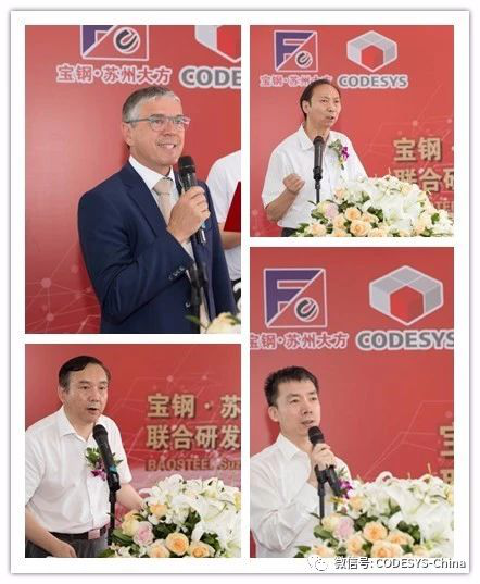 2018年7月19日,在美麗的蘇州,寶鋼工程技術(shù)集團與全球領(lǐng)先的工業(yè)信息技術(shù)及數(shù)字化工廠解決方案提供商-德國CODESYS(歐德神思)控股集團舉辦了聯(lián)合研發(fā)中心成立慶典活動。中國機械工業(yè)聯(lián)合會執(zhí)行會長,中國機器人產(chǎn)業(yè)聯(lián)盟執(zhí)行理事長宋曉剛先生;聯(lián)合國發(fā)展中國家工程技術(shù)院院士,全國智能機器人創(chuàng)新聯(lián)盟常務(wù)副理事長,韓力群女士;寶鋼工程技術(shù)集團有限公司總經(jīng)理、黨委副書記汪平剛先生;德國CODESYS控股集團全球CEO Manfred Werner先生;蘇州大方特種車股份有限公司總經(jīng)理田學鴻先生;德國CODESYS控股集團大中華區(qū)總裁馬立新先生;華中科技大學制造裝備數(shù)字化國家工程研究中心常務(wù)副主任李斌教授,以及來自匯川技術(shù)、上海新時達、上海電氣、重慶川儀、博眾集團、新漢、威綸通等等的企業(yè)客戶代表,來自山東大學、北京科技大學、哈爾濱工業(yè)大學(深圳)、上海交通大學、浙江工業(yè)大學等已經(jīng)與CODESYS共建實驗室的合作單位代表出席了本次開業(yè)慶典。