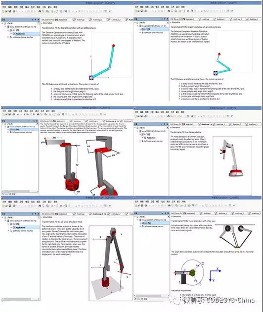 這款展品是CODESYS工程師設(shè)計(jì)并搭建用于進(jìn)行CODESYS運(yùn)動(dòng)控制、機(jī)器人控制以及可視化展示的展示品。CODESYS將運(yùn)動(dòng)控制、邏輯控制合二為一,集成在IEC 61131-3標(biāo)準(zhǔn)的CODESYS編程系統(tǒng)和CODESYS實(shí)時(shí)運(yùn)行系統(tǒng)中。功能包括:使用PLCOpen認(rèn)證的POU庫,可實(shí)現(xiàn)單軸和多軸橫向系統(tǒng)運(yùn)動(dòng);電子凸輪傳動(dòng);CNC控制;支持PLCOpen Part4標(biāo)準(zhǔn)功能塊;其運(yùn)動(dòng)控制編程獨(dú)立于總線和驅(qū)動(dòng)器;可用于眾多標(biāo)準(zhǔn)運(yùn)動(dòng)控制器的驅(qū)動(dòng)器,比如CIA DSP 402控制器、步進(jìn)電機(jī)、變頻器、虛擬軸等;支持G代碼來規(guī)劃和編輯復(fù)雜的動(dòng)作;包含豐富的函數(shù)庫,支持不同運(yùn)動(dòng)學(xué)的工業(yè)機(jī)器人的開發(fā),如Delta機(jī)器人、Scara機(jī)器人、六軸機(jī)器人等。
